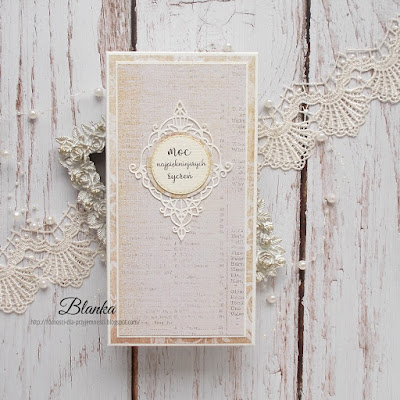 Papiery Mintay, prawy górny róg kartki pusty, bo czeka na spersonalizowanie. W środku miejsce na wpisanie życzeń i ewentualnie wsunięcie czegoś pod kartę umieszczoną po lewej stronie, np. szeleszczącego prezentu :)